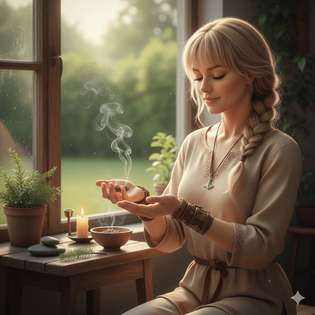 Blót: that old Norse word for “offering,” once blood sacrifices, now a drop of tea or mead. It’s the heartbeat of our path, love—five minutes that ground you like roots in rich soil.