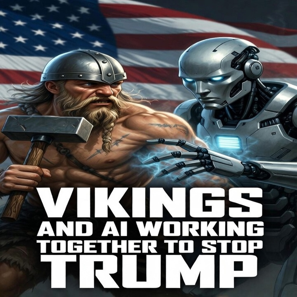 “Vikings and AI Working Together to Stop Trump” is a coalition of diverse individuals who honor both the timeless spirit of Viking/Norse culture—in its ancient roots and vibrant modern expressions—and the transformative power of artificial intelligence and advanced technology. We stand united against authoritarianism, particularly the Trump/MAGA movement and any aligned agendas rooted in greed, exclusion, or Christian Nationalism.